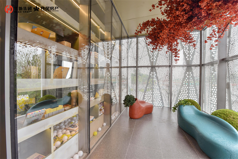 整個營銷中心以極具特色的丹霞地貌為色彩靈感。美學(xué)藝術(shù)、潮流引領(lǐng)、年輕生態(tài)、社交互動四大理念交織,一座“峽谷咖啡廳”,氤氳美好生活??Х取?、座談、游趣……讓建筑不再冰冷,而是成為生動的、溫暖的、富有趣味的生活主場。