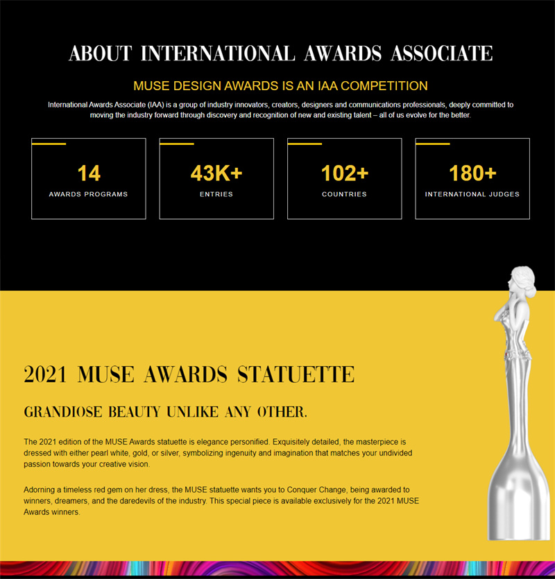 作為始創(chuàng)于美國紐約的專業(yè)國際設計競賽,繆斯設計獎(Muse Design Awards)是全球創(chuàng)意設計領域最具國際影響力的獎項之一,嚴格的評審體系和高質量的評判標準每年吸引眾多全球知名品牌與設計師爭相參與。