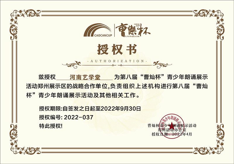 河南藝學(xué)堂獲“曹燦杯”全國(guó)青少年朗誦展示活動(dòng)優(yōu)秀合作單位稱號(hào)