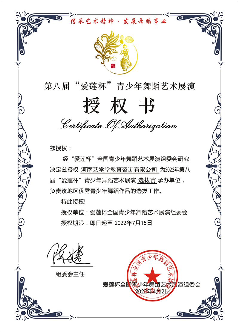 除全國(guó)朗誦大賽戰(zhàn)略合作單位以外,河南藝學(xué)堂還被授予“愛(ài)蓮杯”青少兒舞蹈藝術(shù)展演選拔賽承辦單位,負(fù)責(zé)該地區(qū)優(yōu)秀青少年舞蹈作品的選拔工作。作為全國(guó)性舞蹈大賽,它始終秉承“傳承藝術(shù)精神,發(fā)展舞蹈事業(yè)”宗旨,開(kāi)展具有廣泛性群眾基礎(chǔ)的文化藝術(shù)交流活動(dòng)。從2014年至今,已成功舉辦至第七屆。