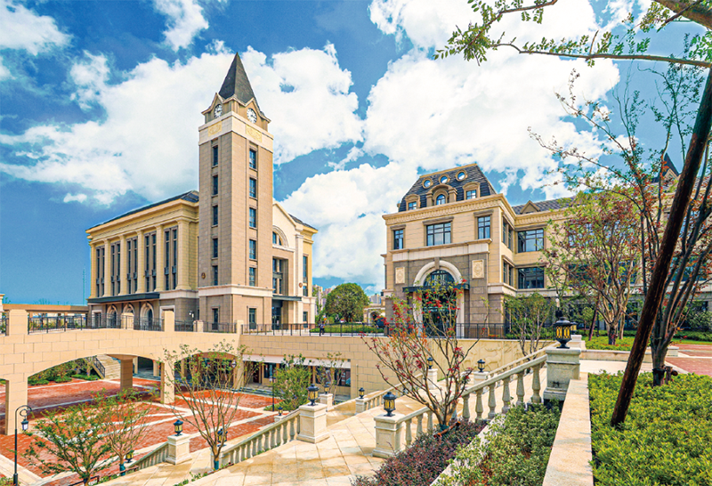 新華公學建筑風格繼承了古典主義經(jīng)典美學原則,配以現(xiàn)代簡約的設(shè)計演繹,使得校園具有端莊雅致、成熟內(nèi)斂的整體建筑風貌。圍繞建筑形成了花園式的多重院落空間,為師生打造了綠意盎然的生態(tài)景觀體系,滿足了“公共”及“獨立”的多樣化需求:軸線由入口空間展開,打造秩序感公共空間,空間類型豐富;中心核心庭院廣場,整個校區(qū)的核心亮點空間;教學區(qū)每塊設(shè)置各自的課間活動庭院;生活區(qū)設(shè)置運動場地和花園田園等休閑與生活拓展空間。