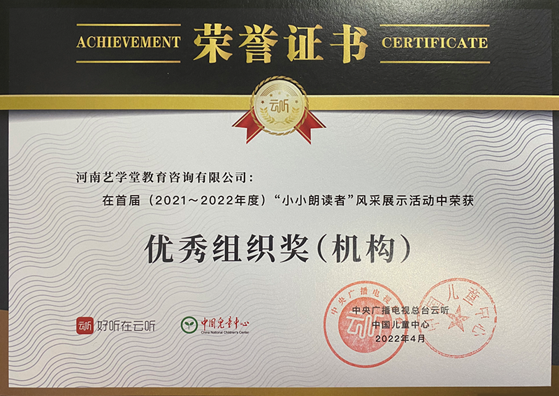 業(yè)內(nèi)認(rèn)可,載譽前行。合肥、鄭州、南昌、成都、濟(jì)南5大城市校區(qū)同步聯(lián)動,開展“曹燦杯”青少年朗誦展示活動、熱舞吧·少年街舞大賽、“花漾星主播”語言藝術(shù)大賽、電視臺少兒六一晚會等活動,獲得社會與家長認(rèn)可,榮獲中央廣播電視臺頒發(fā)“優(yōu)秀組織獎”,中國美術(shù)學(xué)院頒發(fā)“教學(xué)示范基地”、“優(yōu)秀教學(xué)基地”,市監(jiān)管局頒發(fā)“放心消費示范單位”等稱號。