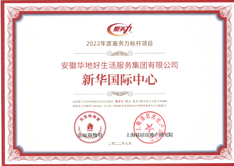 峰會現(xiàn)場重磅發(fā)布了「 2022物業(yè)服務(wù)力系列測評成果 」,為物業(yè)行業(yè)樹立了服務(wù)力風(fēng)向標(biāo)。在「2022物業(yè)服務(wù)力系列測評成果」中,華地好生活集團(tuán)憑借強(qiáng)大綜合實力、高品質(zhì)運(yùn)營服務(wù)能力以及公眾口碑等突出表現(xiàn),榮獲“2022中國物業(yè)企業(yè)服務(wù)力百強(qiáng)企業(yè)TOP49”、“2022中國城市服務(wù)企業(yè)TOP10”等殊榮,北京新華國際中心作為華地好生活集團(tuán)“首都圈”業(yè)務(wù)版圖中的代表項目之一,憑借全產(chǎn)業(yè)鏈、全配套產(chǎn)業(yè)集群的一站式服務(wù)優(yōu)勢,榮獲“2022中國服務(wù)力產(chǎn)業(yè)園標(biāo)桿項目”。