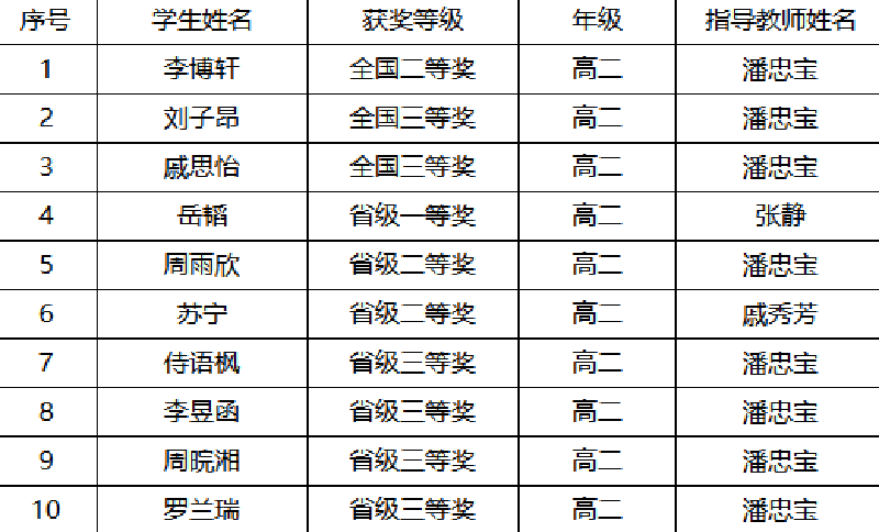 高二年級獲獎(jiǎng)名單