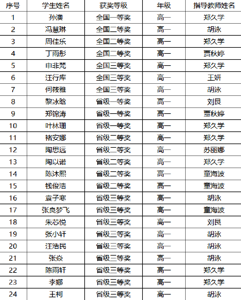 高一年級獲獎(jiǎng)名單