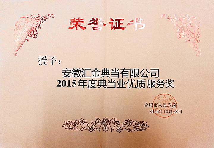 近日,合肥市人民政府發(fā)文《合肥市人民政府關(guān)于2015年度金融機(jī)構(gòu)支持地方發(fā)展先進(jìn)單位的通報(bào)》(合政秘〔2016〕103號),安徽匯金典當(dāng)有限公司(以下簡稱匯金典當(dāng))憑借在地方經(jīng)濟(jì)發(fā)展中所做出的突出貢獻(xiàn),榮獲了“2015年度典當(dāng)業(yè)優(yōu)質(zhì)服務(wù)獎(jiǎng)”。獲此殊榮是地方政府及社會大眾對匯金典當(dāng)?shù)某浞终J(rèn)可。