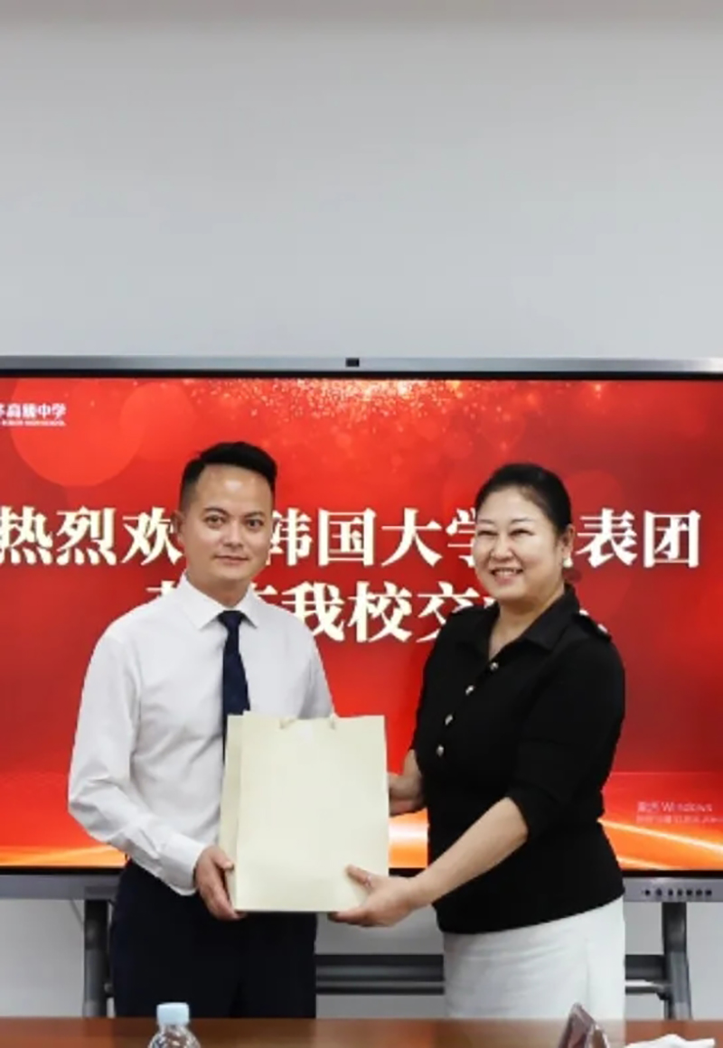 遠(yuǎn)道而來的韓國交流團(tuán)首先參觀了新華高級中學(xué)校園。參觀途中,吳東校長向韓國交流團(tuán)介紹了學(xué)校的歷史、辦學(xué)理念以及校園文化等。學(xué)?,F(xiàn)代化的校園設(shè)施、優(yōu)良的教學(xué)環(huán)境、先進(jìn)的教育理念,讓交流團(tuán)贊不絕口。在現(xiàn)場交流會上,代表團(tuán)與我校互相贈送了禮物。