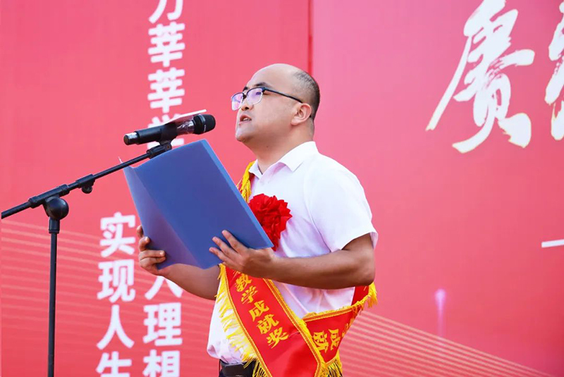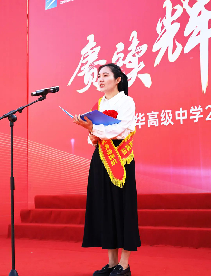 優(yōu)秀教職工代表宣夢玲老師發(fā)言。她希望高一年級(jí)同學(xué)能在新的征程上努力拼搏,以實(shí)際行動(dòng)追逐夢想,并寄語高二、高三年級(jí)同學(xué)“筑夢”、“圓夢”,擁抱青春,挑戰(zhàn)自我,實(shí)現(xiàn)人生價(jià)值。