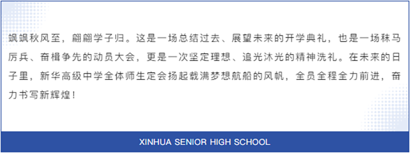 萬物積勢迎秋風(fēng),策馬揚(yáng)鞭續(xù)輝煌。2024年9月10日上午,新華高級(jí)中學(xué)在校運(yùn)動(dòng)場隆重舉行2024年秋季開學(xué)典禮暨教師節(jié)表彰活動(dòng)。新華高級(jí)中學(xué)校長徐邦民,副校長陳俊、王昌武、蔡賢滿、吳東、方明生等領(lǐng)導(dǎo)及全體師生齊聚一堂,共同見證了這一激動(dòng)人心的時(shí)刻。新學(xué)期,新面貌,我們重新啟程!