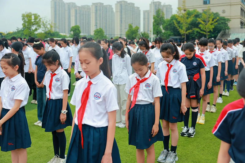 此次演練結(jié)合中秋假期結(jié)束后的第一個升旗儀式一同舉行,演練結(jié)束后,同學(xué)們整齊列隊,前往操場舉行升旗儀式。一陣莊重嚴(yán)肅的默哀后,總校長秦新春先生進(jìn)行了國旗下的講話。他帶領(lǐng)大家回顧了那段令國人屈辱的歷史,并告誡同學(xué)們要銘記歷史,勿忘國恥。同時要以史為誡,發(fā)憤圖強(qiáng),鑄牢中華民族共同體意識,成為具有愛國主義底色的青少年。