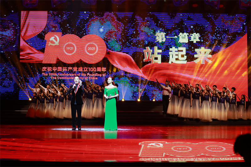 新華公學(xué)童聲合唱團完美的用哼鳴式演唱法為晚會三個篇章開場,用歌聲向中國共產(chǎn)黨百年華誕獻禮,用微笑和行動表明作為社會主義接班人的決心:“童心向黨,堅決跟黨走,聽從黨的指揮”。