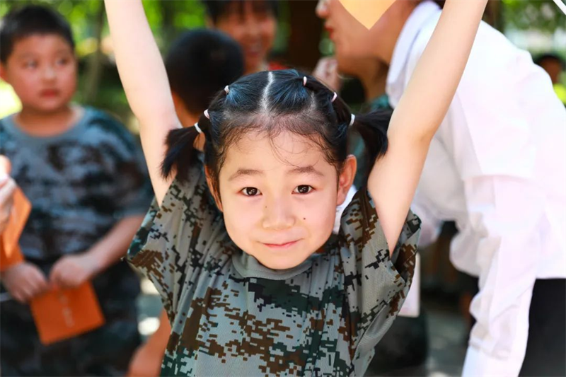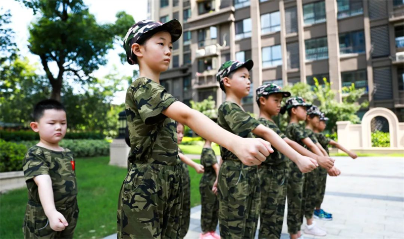 整齊劃一的“迷彩方隊”,無疑是今夏園區(qū)內(nèi)最靚麗的風(fēng)景線。堅定的眼神,挺直的身軀,展現(xiàn)了小小特種兵的颯爽英姿。