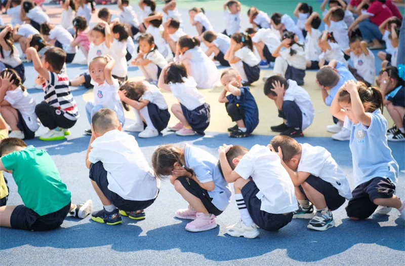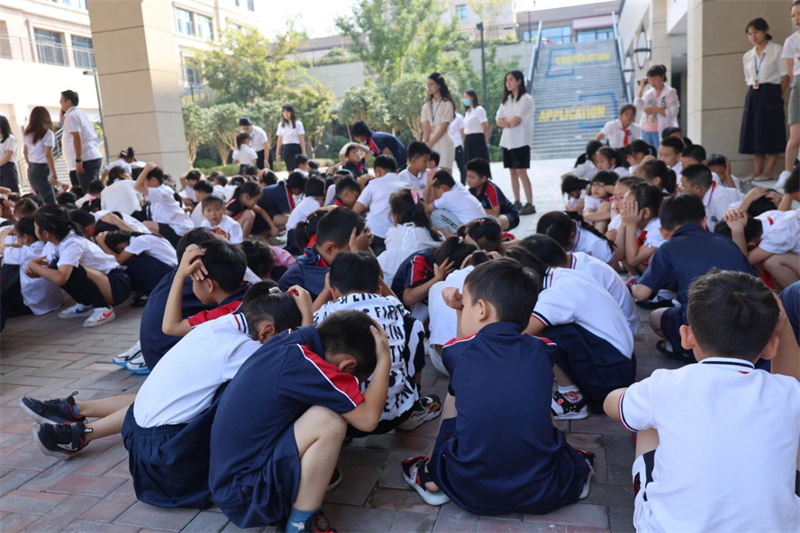 之后在凄厲的空襲警報(bào)聲中,大家立即抱頭蹲下或快速就近躲避,以防傷害。解除警報(bào)悠悠響起后,班級(jí)教師按照預(yù)定位置集中整隊(duì),清點(diǎn)學(xué)生人數(shù),匯報(bào)疏散情況,演練順利完成。