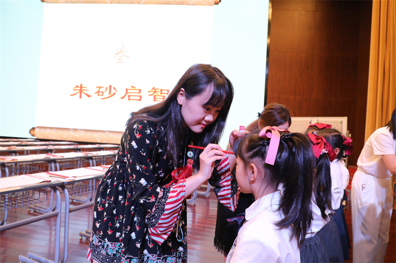額間點(diǎn)紅痣,心中有智慧。將美好祝愿凝聚在這朱砂的中國(guó)紅上,相信同學(xué)們一定會(huì)成為至善博學(xué)的人!