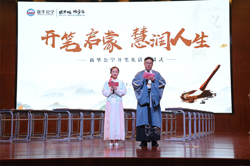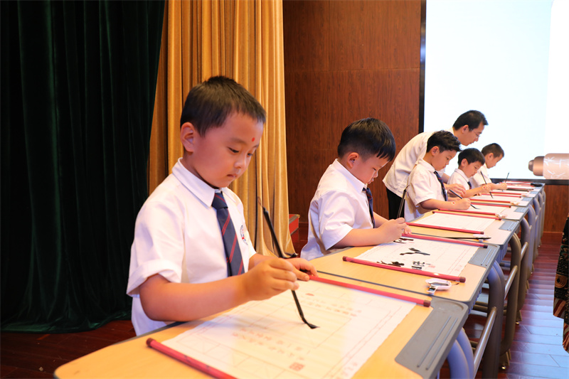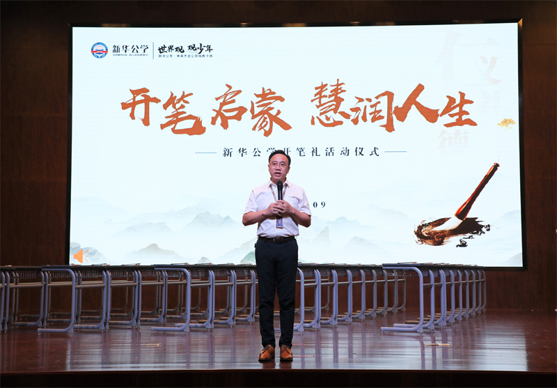 “開(kāi)筆禮”是古代讀書(shū)人人生四大禮之一,被稱(chēng)為人生“第一禮”,俗稱(chēng)“破蒙”,對(duì)每個(gè)讀書(shū)人來(lái)說(shuō)都有著重大的意義,是步入知識(shí)殿堂、走向成才的起點(diǎn)。9月28日下午,在新華公學(xué)報(bào)告廳舉行了莊嚴(yán)而隆重的“開(kāi)筆禮”活動(dòng),一年級(jí)學(xué)生在家長(zhǎng)與老師的見(jiàn)證下“開(kāi)筆啟智”。新華公學(xué)總校長(zhǎng)秦新春為此次開(kāi)筆禮致辭,他期待同學(xué)們?cè)谥袊?guó)傳統(tǒng)文化浸潤(rùn)中,努力成為一名文明有禮、感恩孝順、積極進(jìn)取的終身學(xué)習(xí)者。