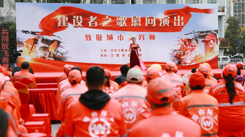 為進(jìn)一步貫徹落實(shí)總書(shū)記七一講話精神,慰問(wèn)一線建設(shè)者,致敬城市美容師。12月15日,由合肥市委宣傳部主辦,合肥演藝集團(tuán)承辦的"建設(shè)者之歌"大型公益演出活動(dòng),在合肥地標(biāo)性建筑——華地金融中心廣場(chǎng)盛大開(kāi)幕。