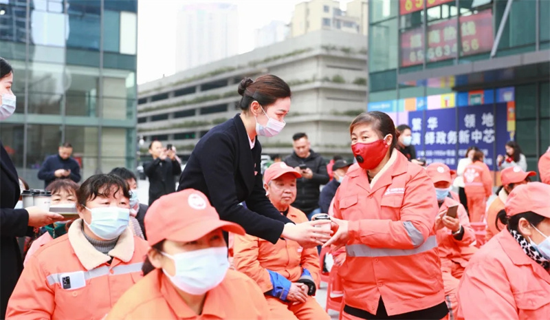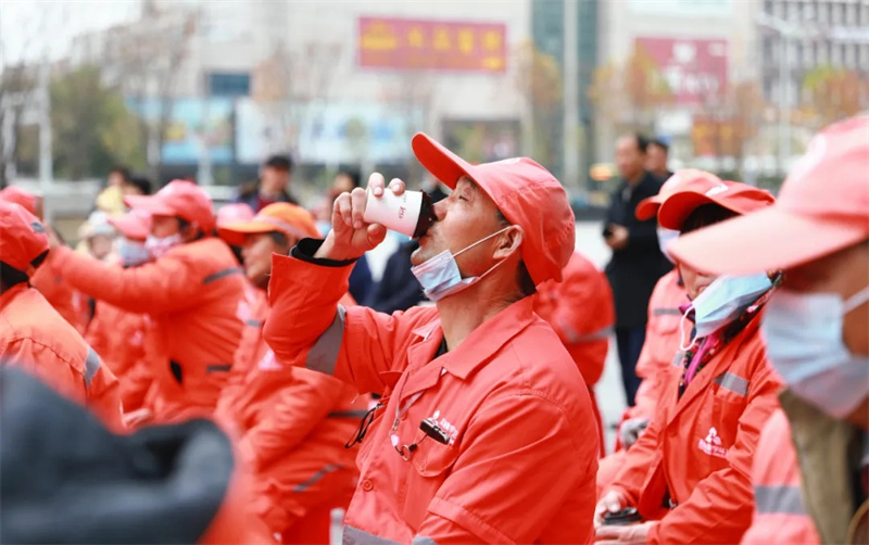 熱氣騰騰的暖心姜茶,為寒冷冬日里的“溫暖太陽(yáng)”,郁金香VIP服務(wù)人員,為每一位“城市建設(shè)者”送上一份冬日的溫暖。 一杯杯溫暖的姜茶,一句句貼心的問(wèn)候,溫暖了每一個(gè)“城市建設(shè)者”的心田,感謝他們?yōu)槌鞘兴龀龅膫ゴ筘暙I(xiàn)。
