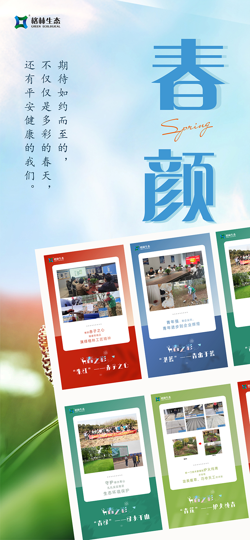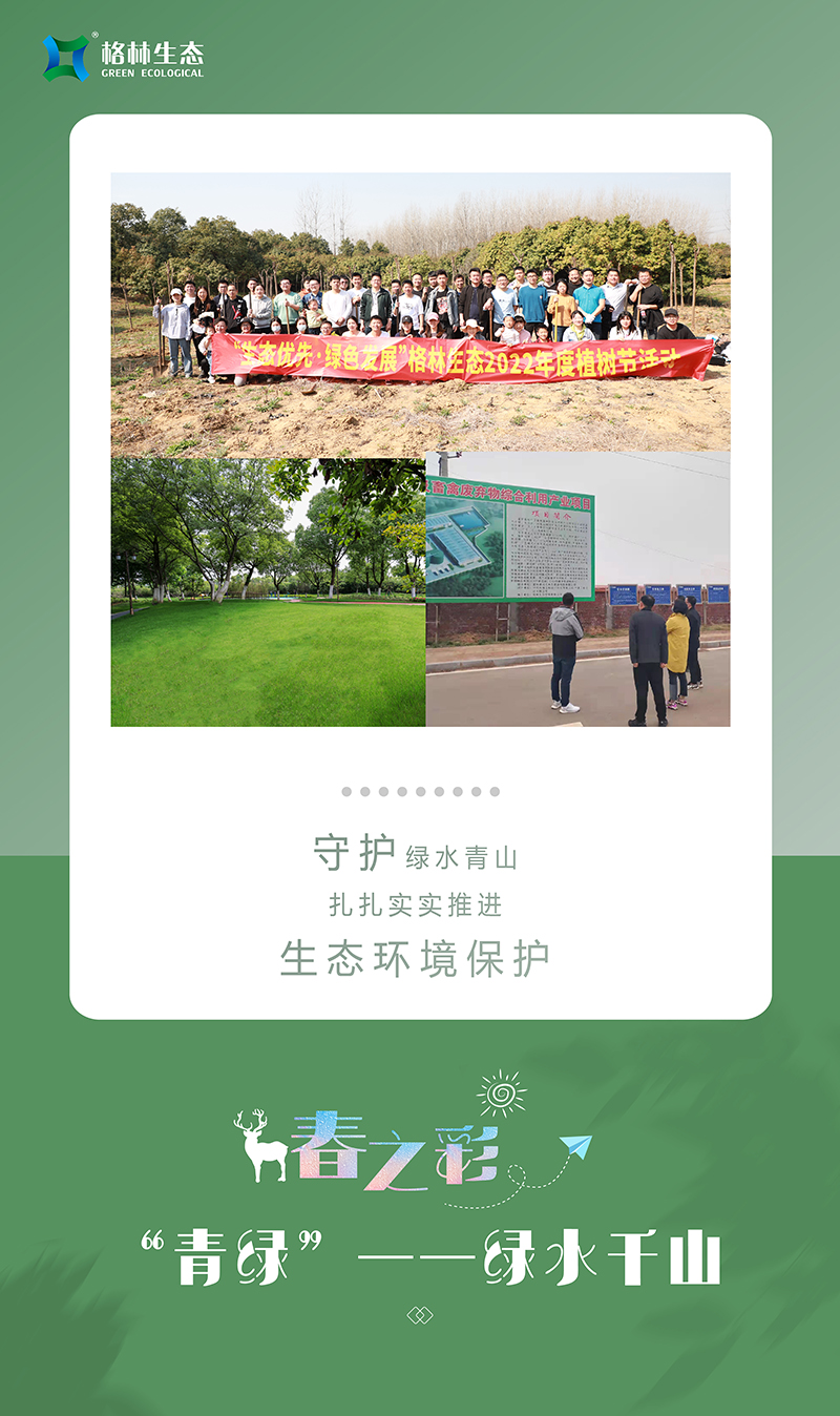 我們牢記“綠水青山就是金山銀山”的生態(tài)理念,每年開展植樹活動(dòng),今年共植三百余株欒樹和紅葉石楠球,讓綠色在大地蔓延;與此同時(shí),格林生態(tài)積極履行社會(huì)責(zé)任,強(qiáng)化集約節(jié)約理念,與合作伙伴協(xié)同做好污水處理改善,促進(jìn)水生態(tài)環(huán)境持續(xù)改善,努力實(shí)現(xiàn)經(jīng)濟(jì)發(fā)展和生態(tài)環(huán)保雙贏目標(biāo)?,F(xiàn)如今正是楊柳青青、草長鶯飛之時(shí),傲人的青山綠水正在以秀美優(yōu)雅的姿態(tài)展現(xiàn)出來!