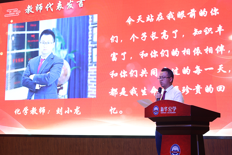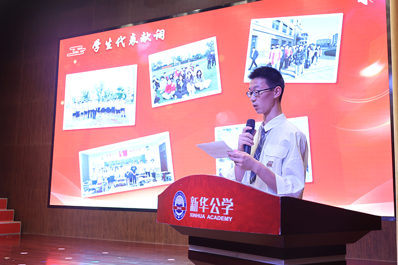 “感謝新華公學(xué)。我的母校您不但給了我們優(yōu)美的校園環(huán)境,過(guò)硬的教學(xué)設(shè)施和優(yōu)秀的師資隊(duì)伍,還教會(huì)了我們做人的基本準(zhǔn)則。我們從三年前那一個(gè)個(gè)稚氣的孩童,成為了今天蓬勃向上的青年,新華公學(xué)的精神已經(jīng)成為我們?nèi)松囊徊糠?,是我們遠(yuǎn)航的永恒動(dòng)力”