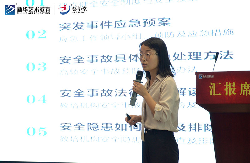 活動(dòng)伊始,新華藝術(shù)教育總經(jīng)理蔡賢滿(mǎn)就藝學(xué)堂校區(qū)安全做重要指示,他強(qiáng)調(diào):“夏季安全隱患高發(fā),藝學(xué)堂開(kāi)展校區(qū)安全培訓(xùn)講座,就是希望樹(shù)立教師安全意識(shí)、規(guī)范校區(qū)安全標(biāo)準(zhǔn),為家長(zhǎng)、孩子營(yíng)造一個(gè)好的校區(qū)環(huán)境。”