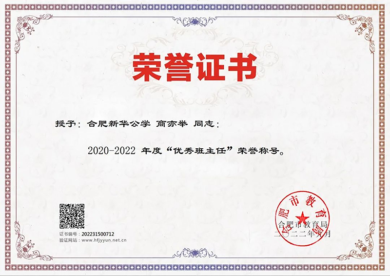 合肥市2020-2022年度優(yōu)秀班主任