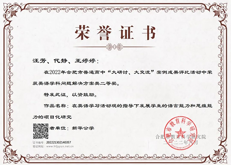 教師發(fā)展的核心是教師的專(zhuān)業(yè)化發(fā)展。合肥新華公學(xué)以教研為抓手,以個(gè)人專(zhuān)業(yè)發(fā)展計(jì)劃書(shū)為藍(lán)圖,通過(guò)“走出去”擴(kuò)大視野,激發(fā)自我發(fā)展內(nèi)驅(qū)力;“請(qǐng)進(jìn)來(lái)”著眼于教師專(zhuān)業(yè)素質(zhì)提升,創(chuàng)設(shè)教師想發(fā)展、能發(fā)展、會(huì)發(fā)展的環(huán)境。讓更多的優(yōu)秀教師培養(yǎng)更多的未來(lái)世界杰出公民!