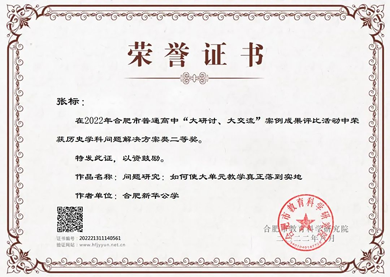 歷史學(xué)科問(wèn)題解決方案類(lèi)二等獎(jiǎng)