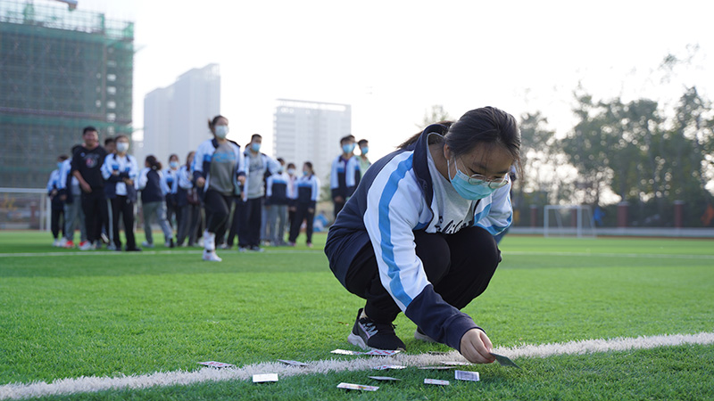 各參賽隊(duì)員需要在紙牌背面朝上的的情況下,按從A到Q的順序翻出紙牌。同學(xué)們盡力的奔跑著,智慧的翻著撲克牌,互相加油鼓勁,最終找到游戲密碼,理解有效的溝通對于團(tuán)隊(duì)勝利的作用。
