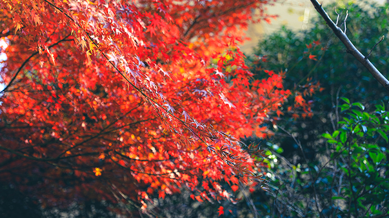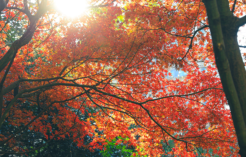 “霜染鴉楓迎日醉”,和煦陽(yáng)光灑滿楓葉,如生命之火輕盈躍動(dòng),以經(jīng)霜不改蓬勃的風(fēng)姿溫暖過(guò)路歸人。