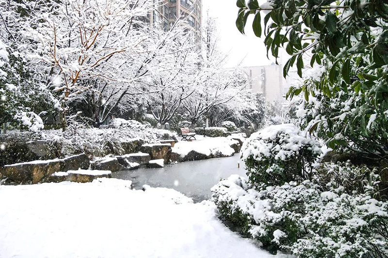 水面上結(jié)了晶瑩的冰紋,洋洋灑灑的白色“羽毛”,為華地社區(qū)蓋上了一層薄薄的“天鵝絨”。堆雪人,打雪仗,成為了社區(qū)里充滿趣味的風(fēng)景。