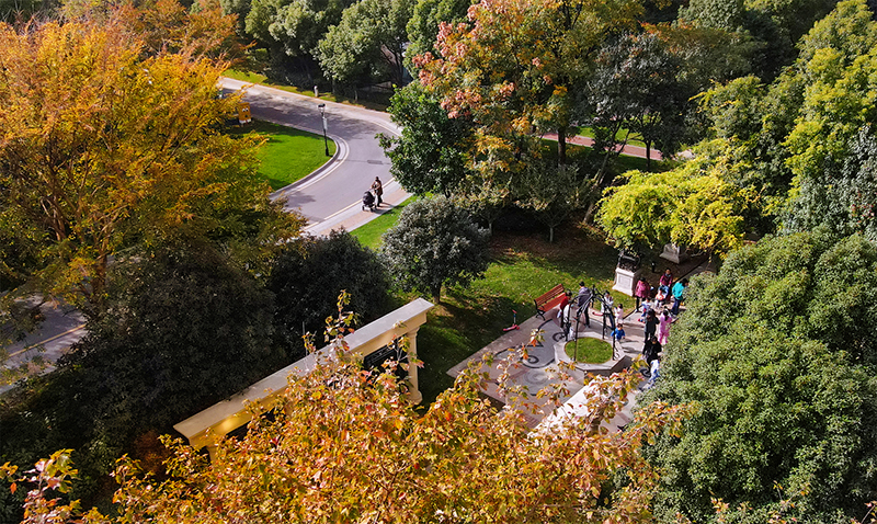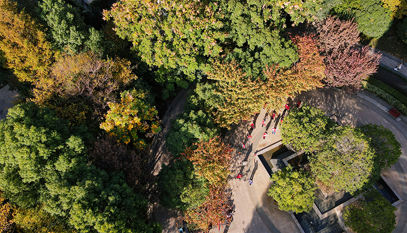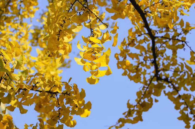 黃葉如金,沉醉在冬景的人們聚在繽紛林蔭下,或漫步賞景,或歡笑暢聊,總有享不完的樂(lè)趣。