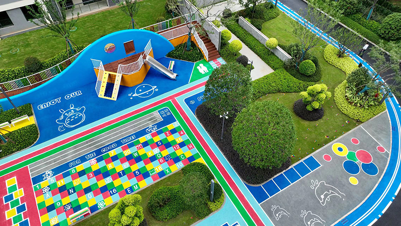 童享世界、陽光大草坪、健康跑道、趣味架空層等休閑活動場地圍合居所,分布在社區(qū)各處,將運(yùn)動、社交、成長等元素融入社區(qū)藍(lán)圖之中,人與建筑及場景在此相融,激發(fā)著你和孩子們的探索欲和好奇心。