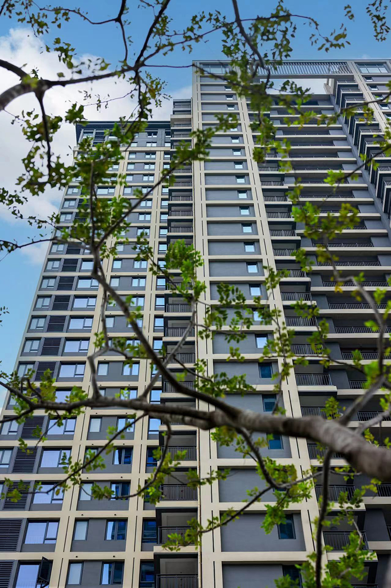 從方寸間的圖紙到漸露新姿的建筑,有序營造出歷久彌新的時(shí)代美學(xué)。簡約時(shí)尚的立面線條呈現(xiàn)建筑的挺拔感,于自然濃蔭中安靜掩映,盡顯清幽寧和。