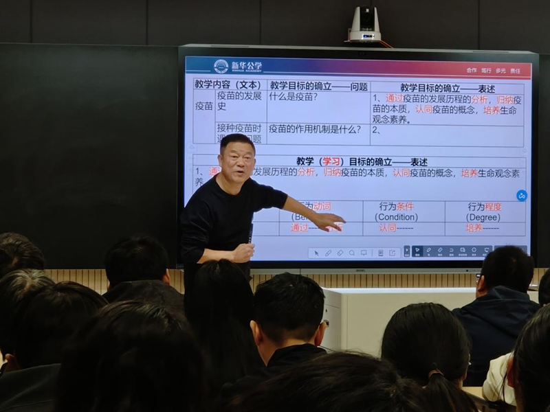 會(huì)議上,為提高校內(nèi)學(xué)科教師學(xué)科素養(yǎng),并根據(jù)雙語(yǔ)部高中近期的教育教學(xué)情況,雙語(yǔ)部中學(xué)尹漸平校長(zhǎng)開(kāi)展了一場(chǎng)“‘學(xué)教評(píng)’一體化教學(xué)設(shè)計(jì)”的專(zhuān)題講座。尹校長(zhǎng)長(zhǎng)期深入一線(xiàn)教學(xué),講座內(nèi)容深入淺出,運(yùn)用詳實(shí)的課例,對(duì)如何實(shí)現(xiàn)“學(xué)教評(píng)”一體化教學(xué)設(shè)計(jì)進(jìn)行了詳細(xì)的講解。專(zhuān)題講座分為“什么是學(xué)教評(píng)一致性教學(xué)設(shè)計(jì)”“教學(xué)設(shè)計(jì)要解決三個(gè)問(wèn)題”“教學(xué)目標(biāo)的確立和表述”“教學(xué)設(shè)計(jì)”“教學(xué)評(píng)價(jià)”“核心素養(yǎng)”六個(gè)部分