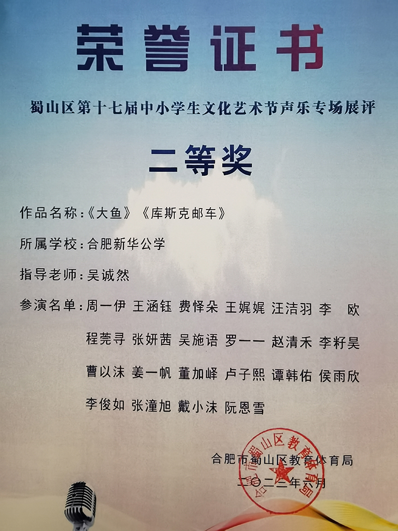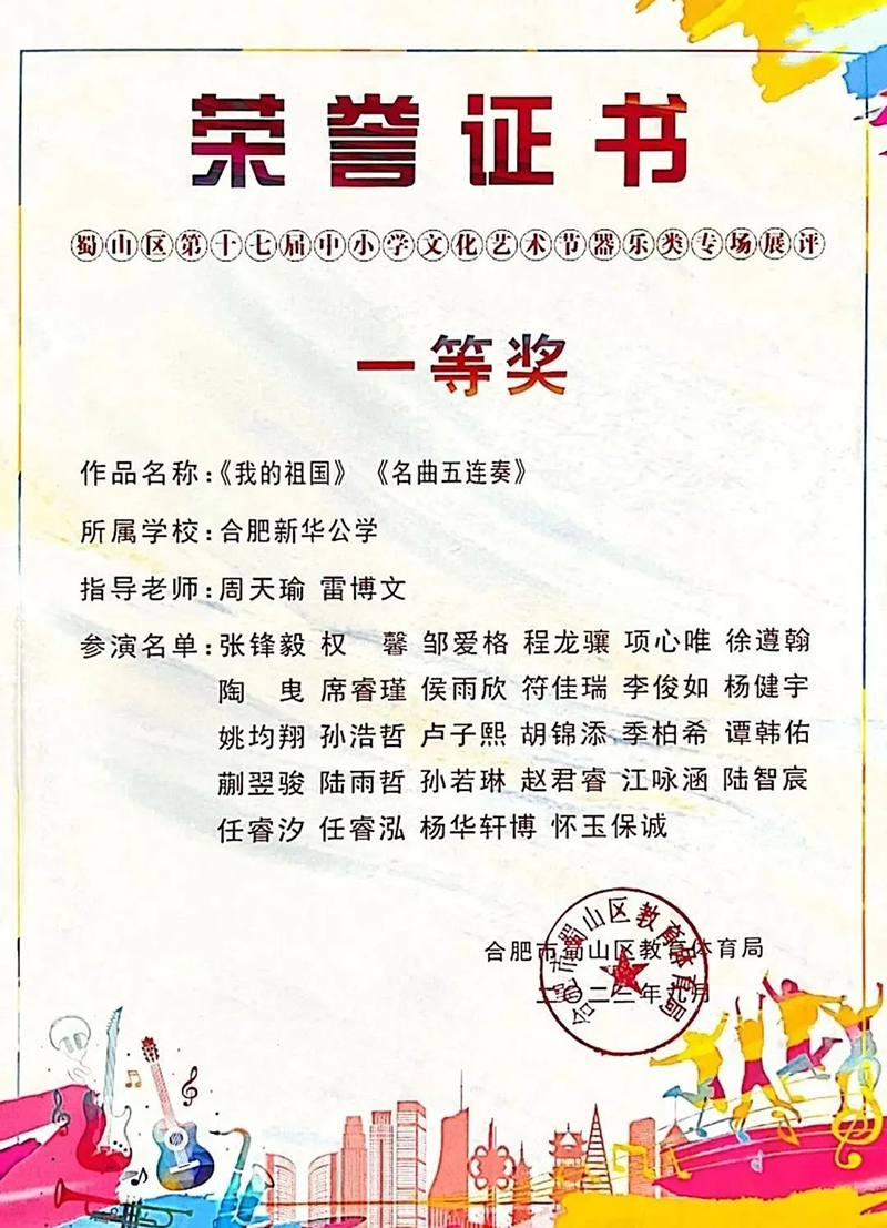 春華秋實(shí),不負(fù)耕耘。在剛剛結(jié)束的合肥市蜀山區(qū)第十七屆中小學(xué)文化藝術(shù)節(jié)中,新華公學(xué)兩支參賽隊(duì)伍都表現(xiàn)出色,分別獲得了獲器樂合奏一等獎(jiǎng)和聲樂專場展評(píng)二等獎(jiǎng)的好成績!其中,由28名學(xué)生代表組成的青少年交響樂團(tuán)成功晉級(jí)市級(jí)比賽,并精心錄制了參賽視頻。