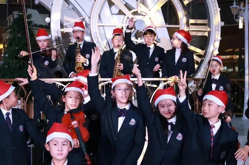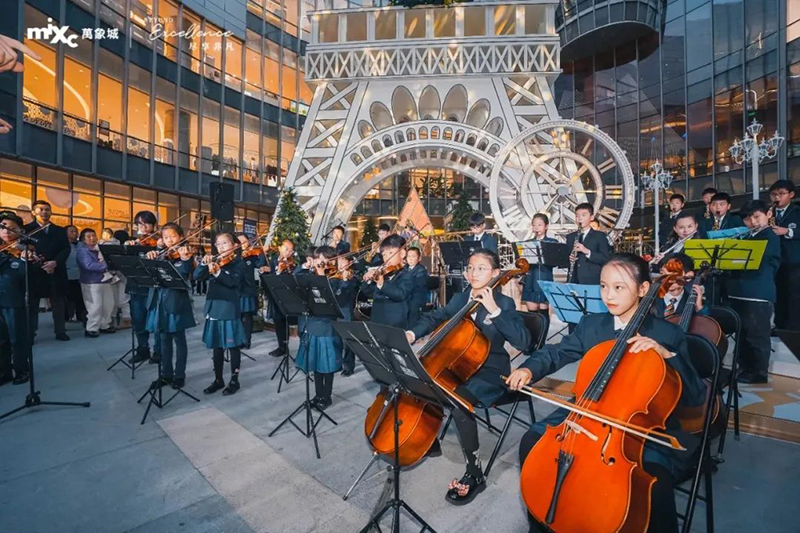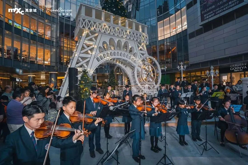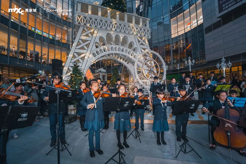 樂團的成員各具風(fēng)采,才華橫溢,富有層次感的音符從孩子們的指尖緩緩流淌,縈繞耳畔飛向天空,這突如其來的驚喜,給觀眾們帶來了一場聽覺盛宴。讓萬象城原本就歡樂的圣誕氛圍,更增添了一抹亮色。