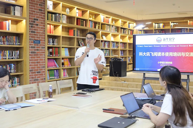 為了更好推進智慧校園建設(shè),打造更加便捷,智能的教育環(huán)境,新華公學(xué)與科大訊飛于今年7月攜手打造智慧學(xué)習(xí)、智慧閱讀的樣板校。新華公學(xué)雙語部小學(xué)為全面提升語文教師信息技術(shù)素養(yǎng),提高智慧課堂應(yīng)用水平,推動智慧課堂與學(xué)科教育深度融合,9月11日上午,開展了科大訊飛AI語文本使用專題培訓(xùn)活動。