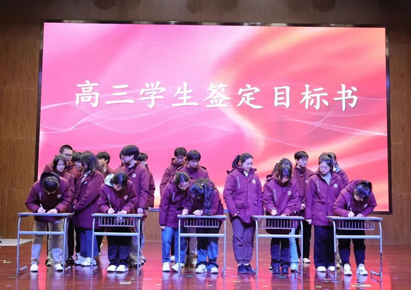 全體高三學(xué)生在高考目標書上簽字,如誓言所說,不負父母的期望,不負老師的厚望,不負青春的理想,為自己交上一份滿意的答卷。