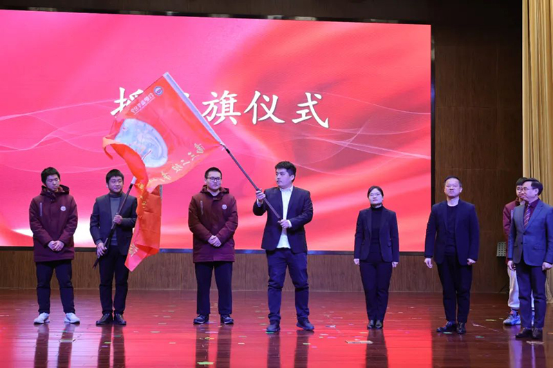 秦新春總校長和尹漸平校長為高三師生授旗,班主任和班長依次接過戰(zhàn)旗。百日拼搏,戰(zhàn)旗銘志;百日奮進,旗開得勝。