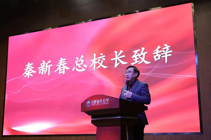 新華公學(xué)秦新春總校長上臺致辭!秦校長殷切叮囑在場的所有同學(xué),要早立志,立大志。立志后更應(yīng)加強個人修養(yǎng),不斷提升自我學(xué)識和人格境界,如此方能實現(xiàn)志。縱使“求志”道路上遭遇挫折,也應(yīng)不失本心,自在坦蕩,在日常生活中感受詩意,快樂進取。