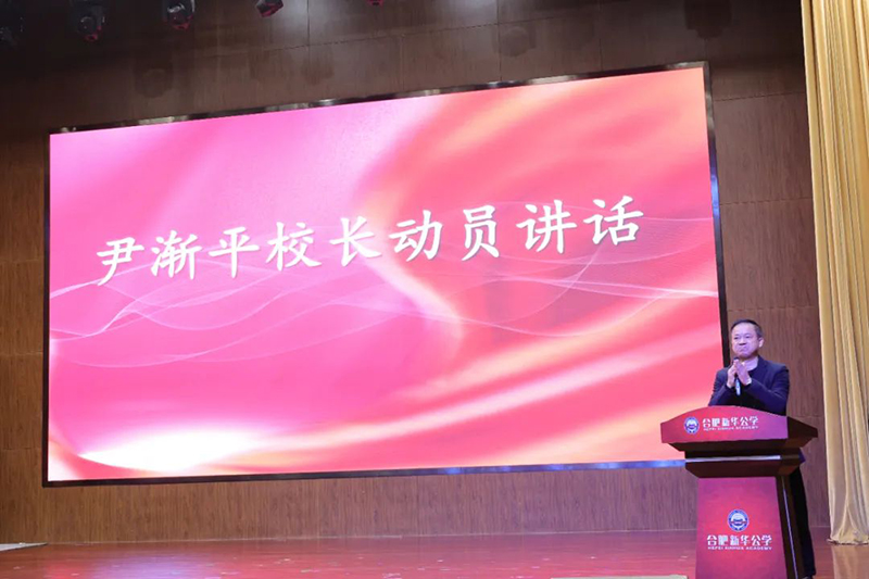 全體師生用熱烈的掌聲歡迎尹漸平校長為本次誓師大會做動員講話。尹校長在講話中指出:這是一場關(guān)乎榮譽、責(zé)任與夢想的盛會。百日,是時間的標尺,更是奮斗的號角。并鄭重地向大家發(fā)出號召:“讓我們以百倍的信心,千倍的努力,迎接百日沖刺奮斗新征程!”